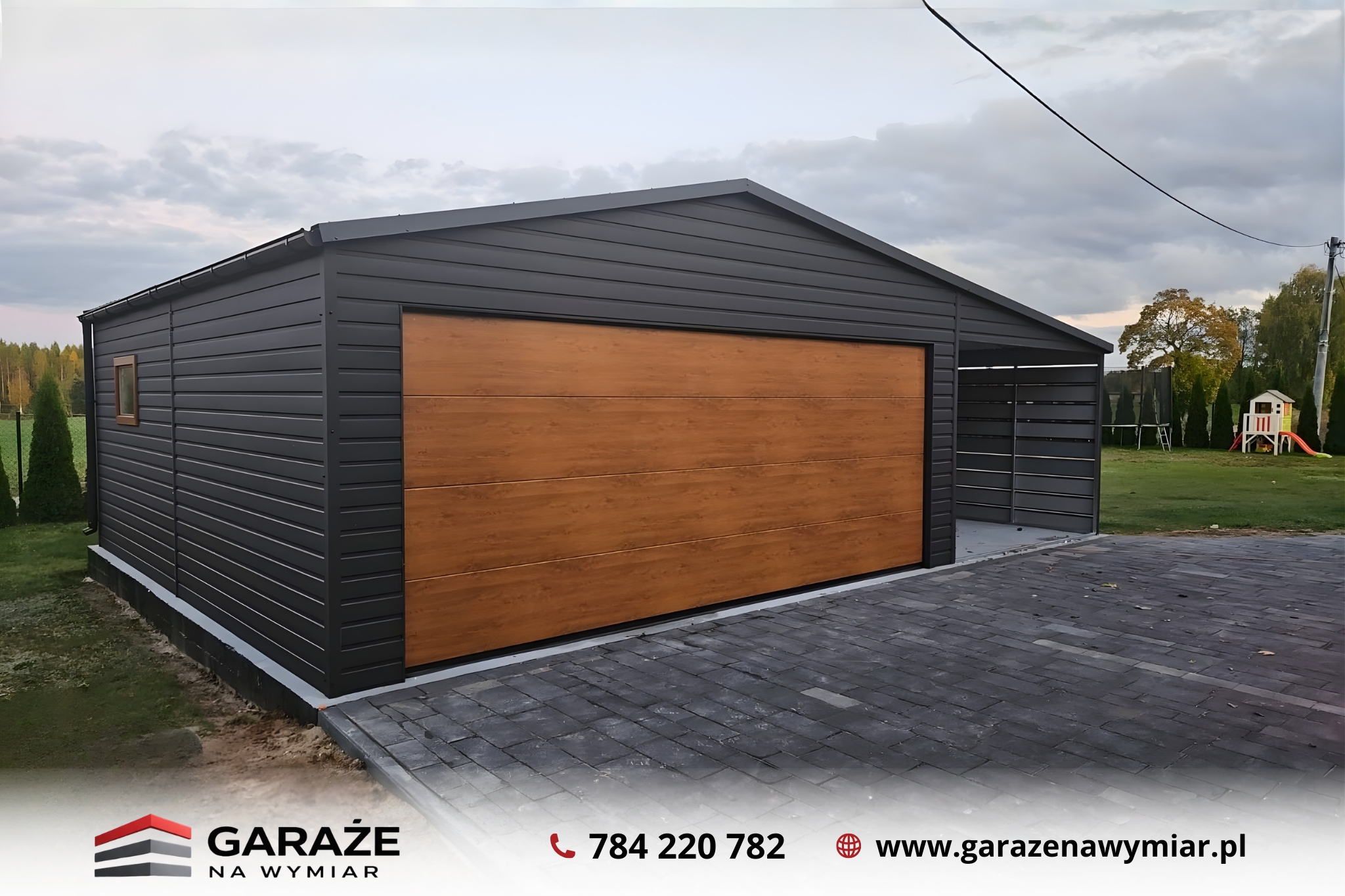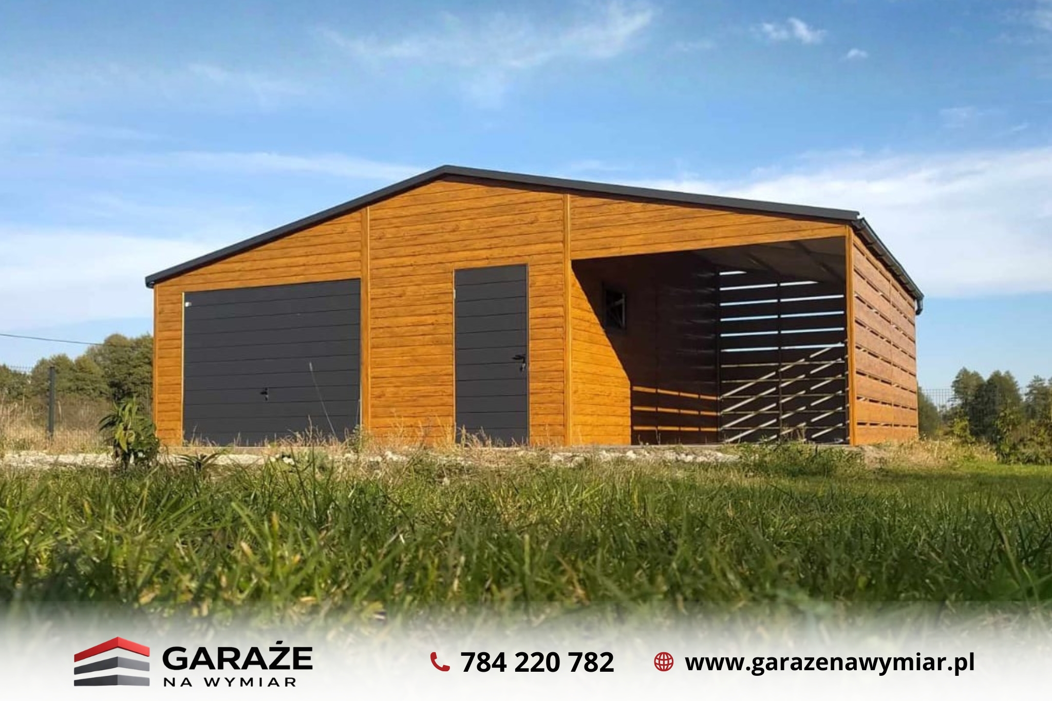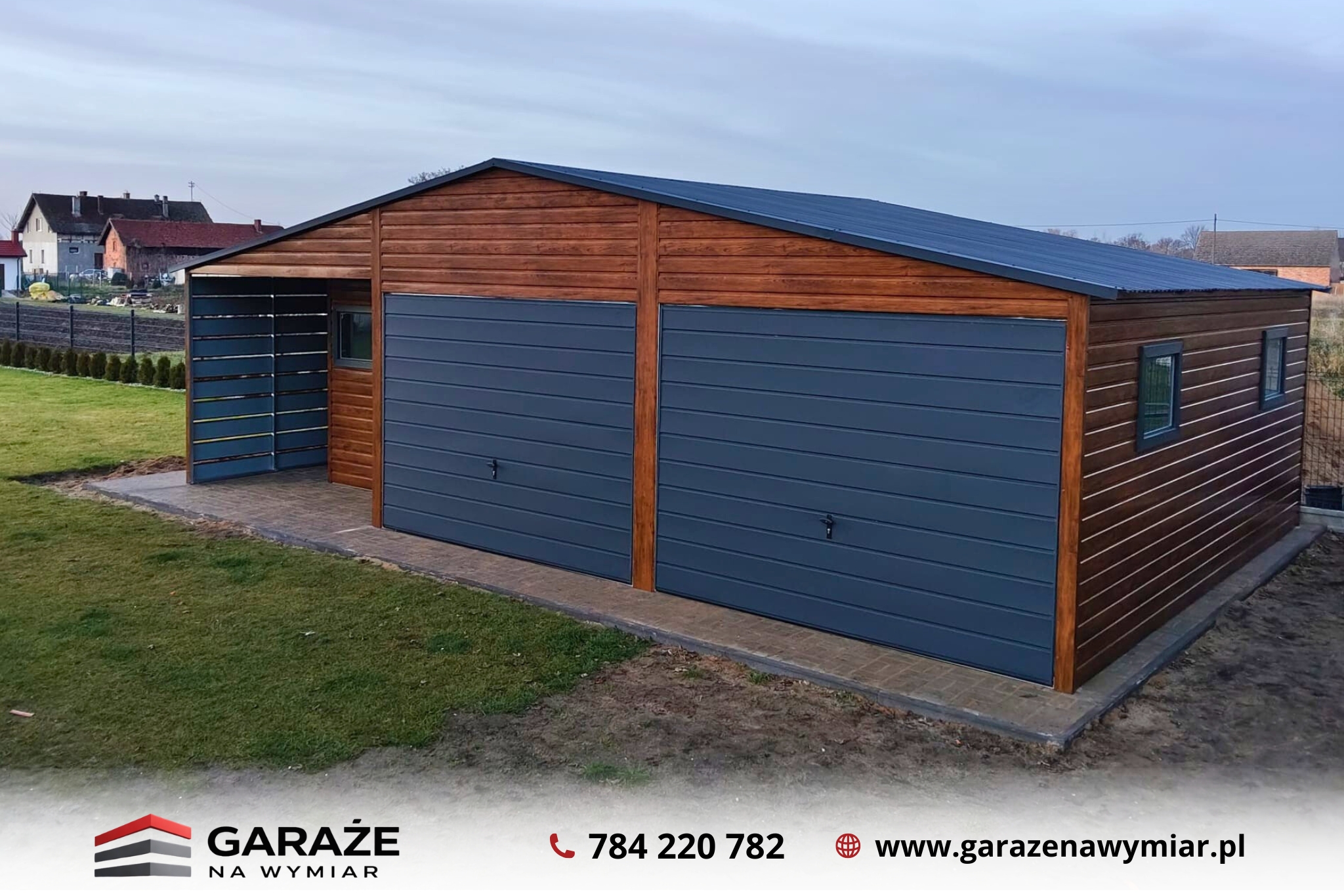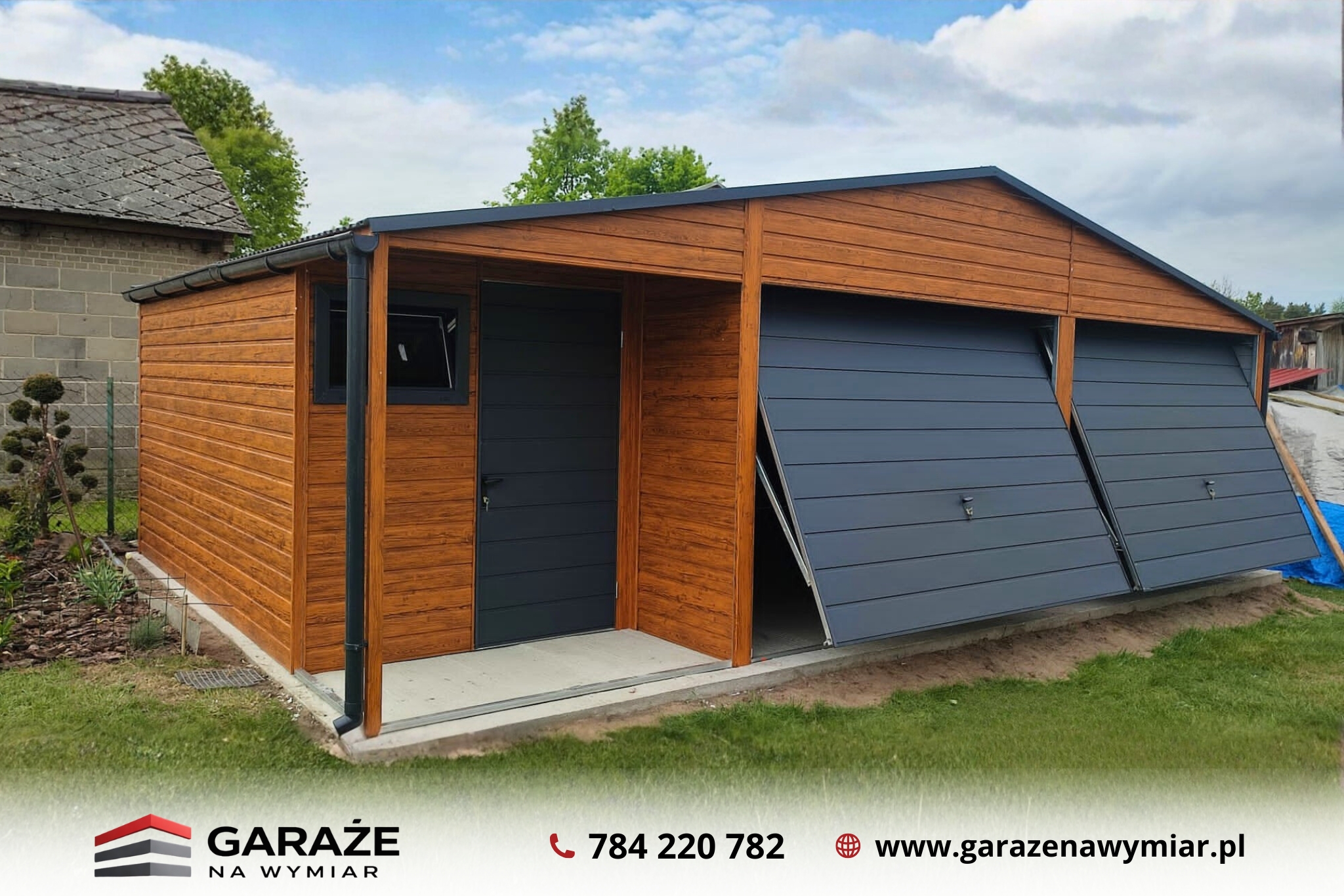 Oferujemy szeroki wybór wykończeń: blacha drewnopodobna, akrylowa, ocynkowana, a także możliwość montażu bram segmentowych. Każdy garaż może zostać doposażony w praktyczne dodatki, takie jak blachodachówka, orynnowanie, napędy elektryczne, okna, drzwi, filc pod dach oraz wiele innych elementów zwiększających funkcjonalność i estetykę konstrukcji.