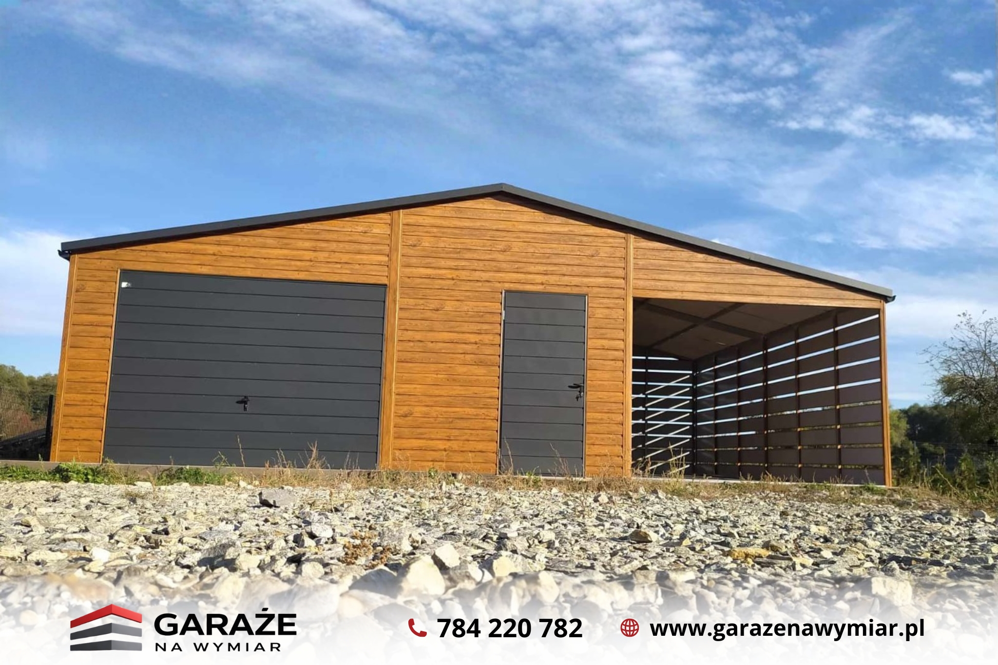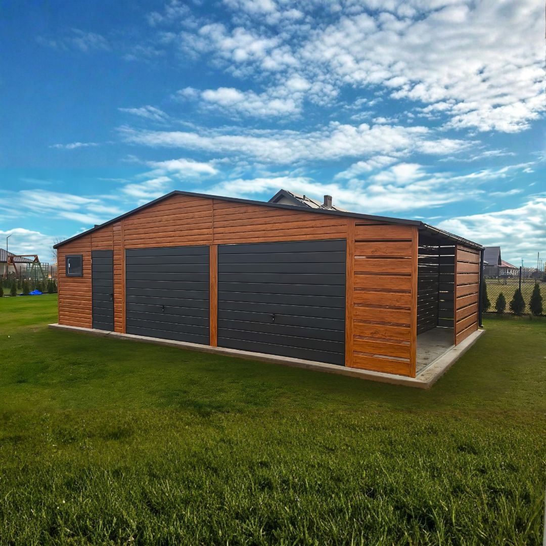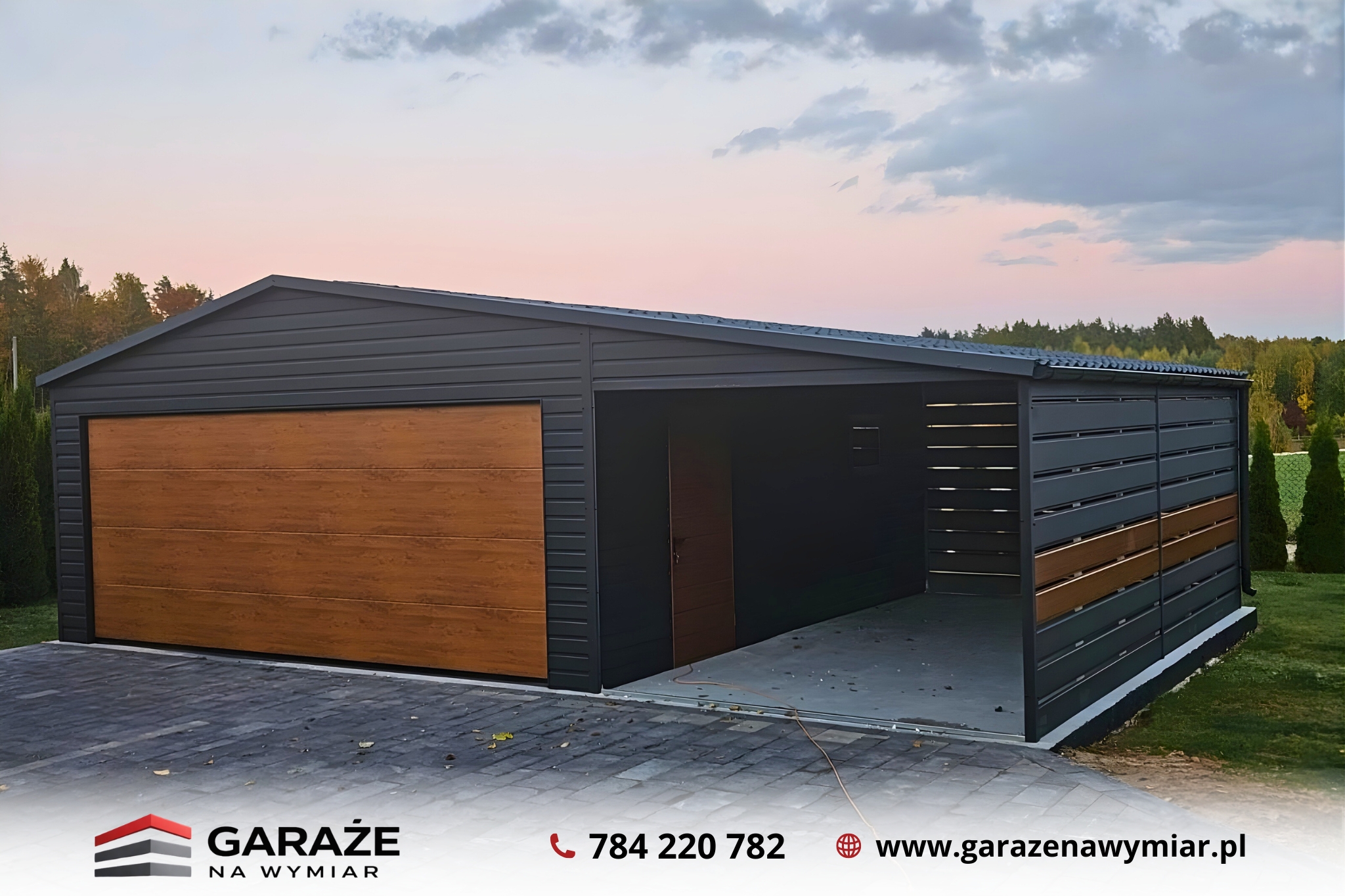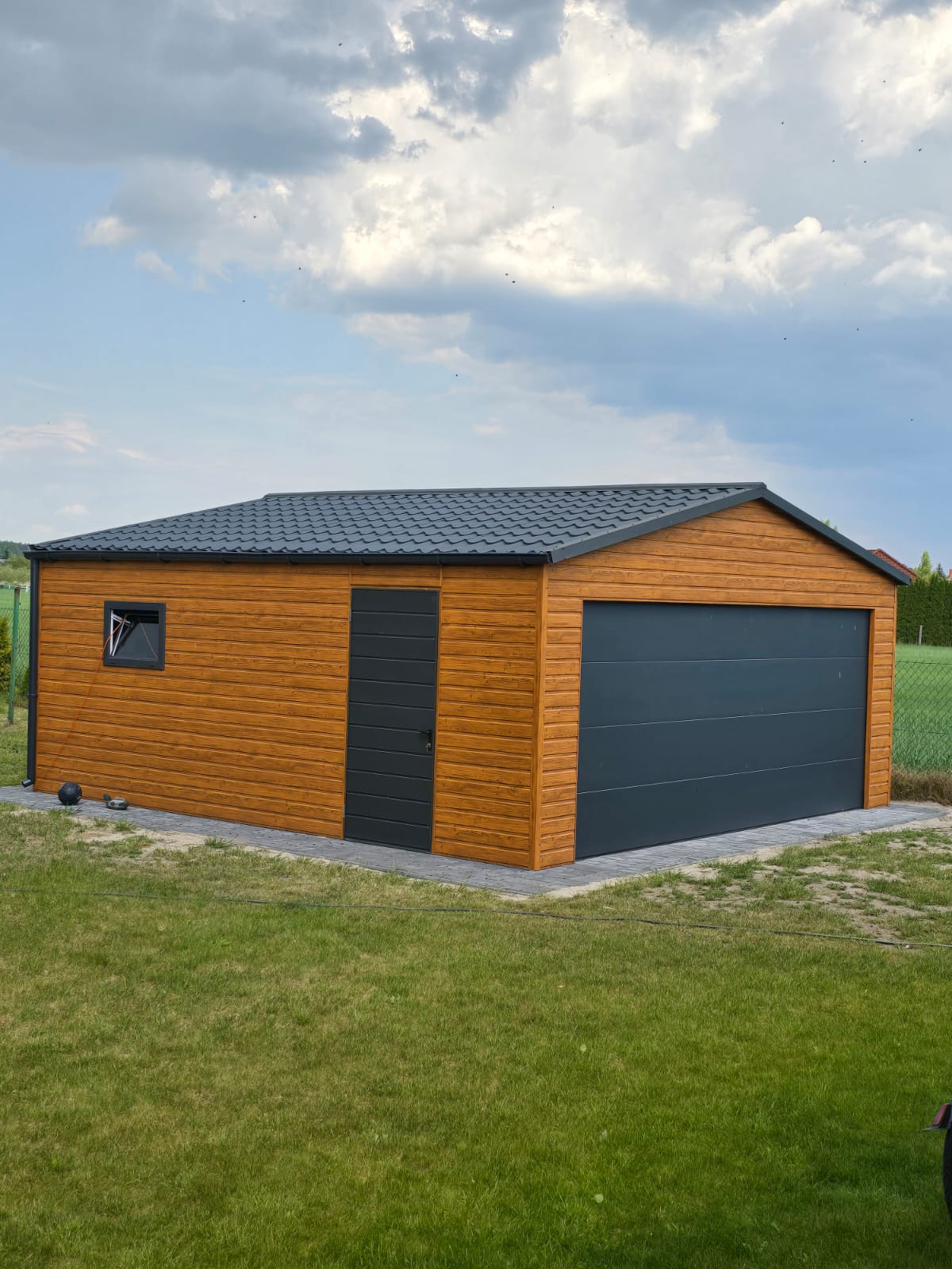 Oferujemy szeroki wybór wykończeń: blacha drewnopodobna, akrylowa, ocynkowana, a także możliwość montażu bram segmentowych. Każdy garaż może zostać doposażony w praktyczne dodatki, takie jak blachodachówka, orynnowanie, napędy elektryczne, okna, drzwi, filc pod dach oraz wiele innych elementów zwiększających funkcjonalność i estetykę konstrukcji.